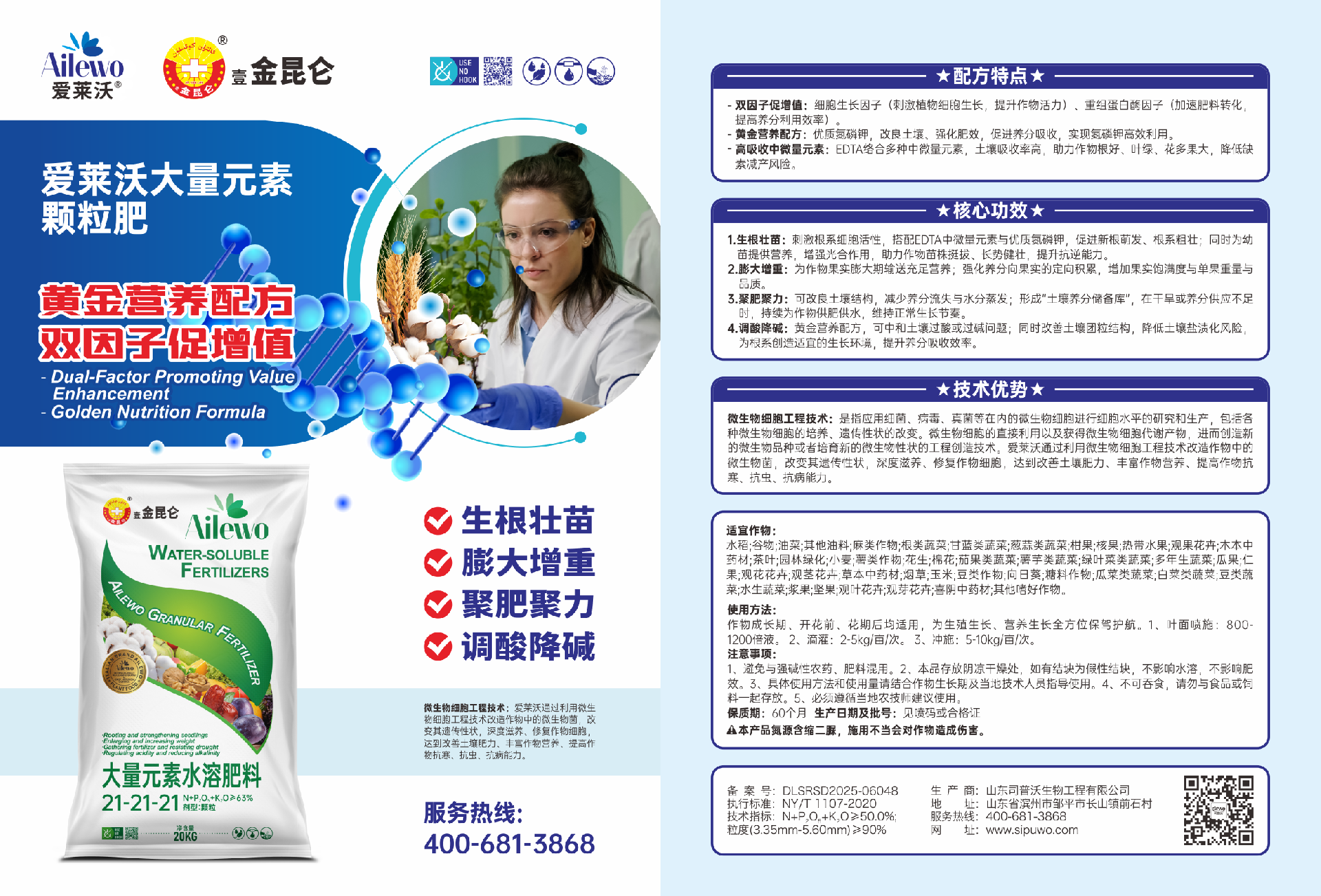 它不仅含有均衡的氮磷钾(21-21-21),更添加了两大“动力因子”:细胞生长因子能像“活力引擎”一样激发作物自身活力,让植株更健壮;重组蛋白酶因子则像“效率加速器”,加速肥料吸收,让您钱不白花,肥不浪费。